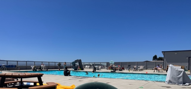 A large swimming pool with a water slide. Opens Memorial Day through Labor Day. Lifeguard on duty!
